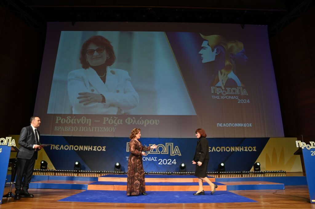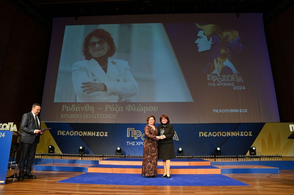 Η Ροδάνθη -Ρόζα Φλώρου, Πρόεδρος της Βυρωνικής Εταιρείας Ιεράς Πόλεως Μεσολογγίου, βραβεύθηκε ως ΠΡΟΣΩΠΟ της ΧΡΟΝΙΑΣ 2024 στον τομέα του Πολιτισμού. Την βράβευση έκανε η Δρ Ολυμπία Βικάτου, Γενική Διευθύντρια Αρχαιοτήτων και Πολιτιστικής Κληρονομιάς του Υπουργείου Πολιτισμού.