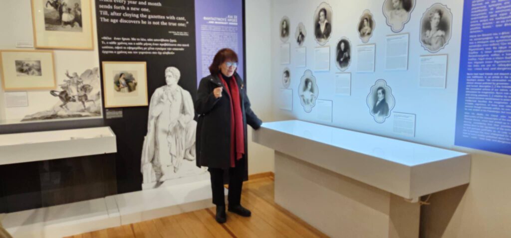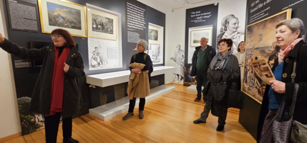 Α) Την μόνιμη Μουσειακή έκθεση “Ο Μπάιρον και η Ελλάδα”, που δημιούργησε το Εθνικό Ιστορικό Μουσείο για το Μουσείο της ΒΥΡΩΝΙΚΗΣ ΕΤΑΙΡΕΙΑΣ με τις Επιμελήτριες-Ιστορικούς κυρίες Νατάσα Καστρίτη και Ρεγγίνα Κατσιμάρδου.