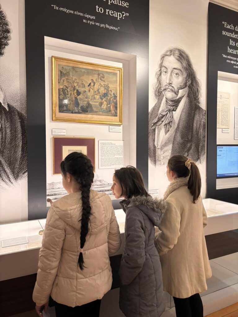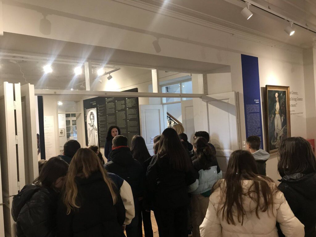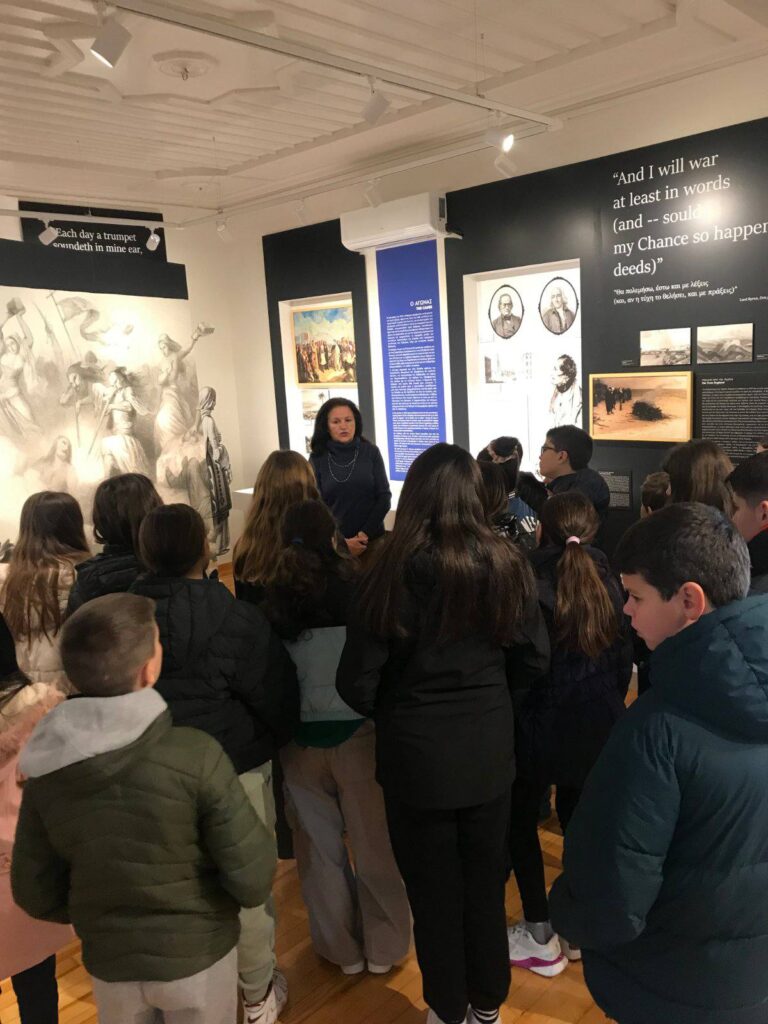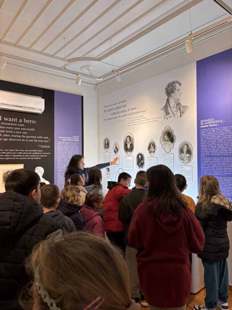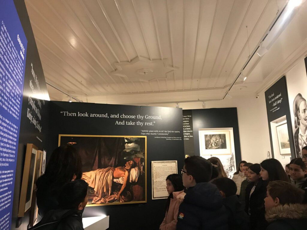 Οι μαθητές και οι μαθήτριες και των δύο Δημοτικών Σχολείων μαζί με τους συνοδούς εκπαιδευτικούς ξεναγηθήκαν από την Συντονίστρια των εκπαιδευτικών προγραμμάτων κα Παναγιώτα Σαραγκανίδα, Εκπαιδευτικό- Μουσειοπαιδαγωγό, στην έκθεση ” Ο Μπάιρον και η Ελλάδα ” που δημιούργησε το Εθνικό Ιστορικό Μουσείο και που είναι αφιερωμένη στη ζωή και το ποιητικό έργο του λαμπρού Φιλέλληνα, θαυμάζοντας τα μοναδικά κημείλια, αλλά και στην Βιβλιοθήκη με την συλλογή των 3.000 βιβλίων που γίνονται τα Συνέδρια και οι εκδηλώσεις της ΒΕΜ.