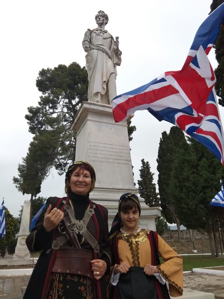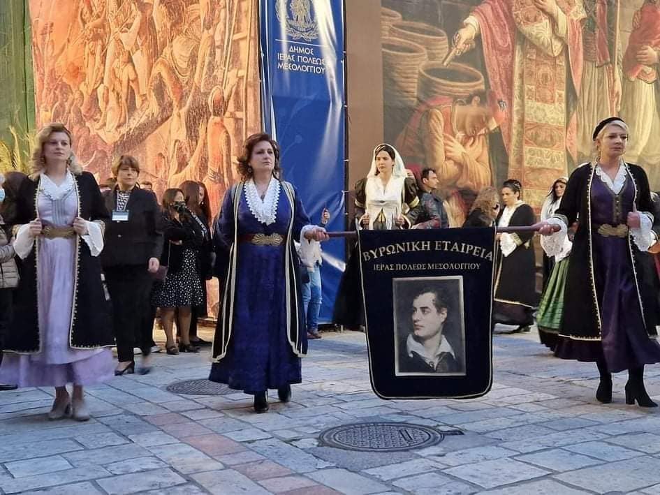 Η Πρόεδρος της Βυρωνικής Εταιρείας, κα. Ροδάνθη – Ρόζα Φλώρου, στην πομπή για το υπέρτατο χρέος στους Ήρωες της Εξόδου, με τιμή και δέος ακολουθεί τα τιμημένα όπλα του αγνού Ήρωα Μάρκου Μπότσαρη.Η Βυρωνική Εταιρεία Ιεράς Πόλεως Μεσολογγίου, στην πομπή για το Ταφείο των Ηρώων Αγωνιστών του Μεσολογγίου, στο υπέρτατο χρέος για την θυσία τους.