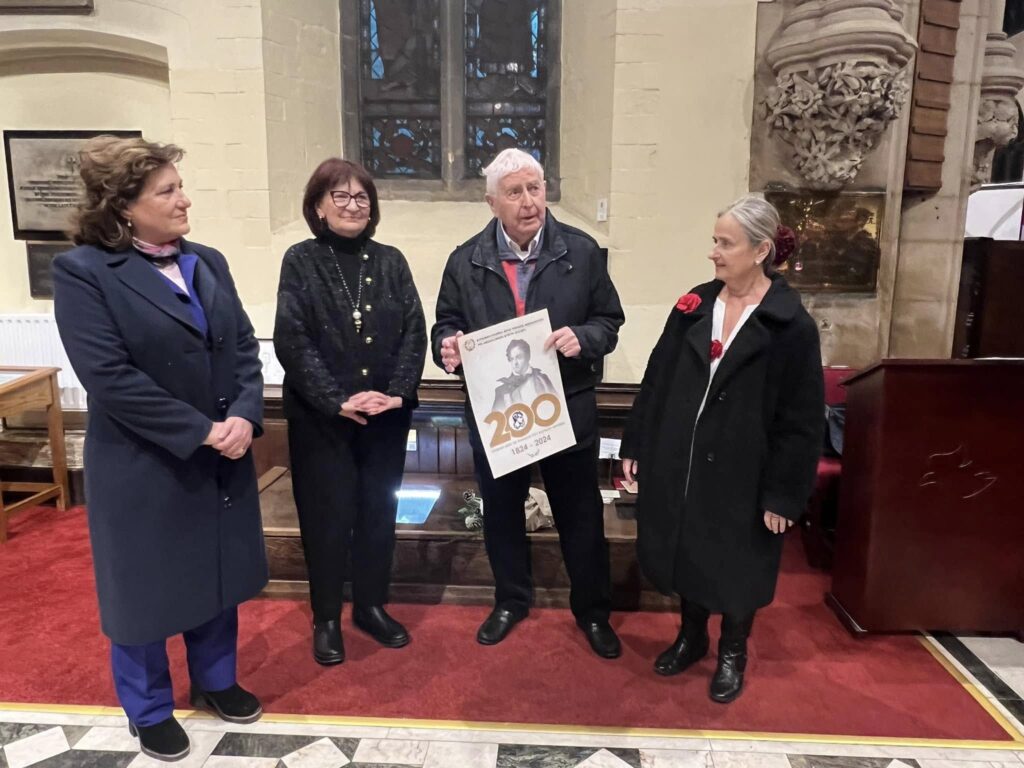 On Saturday, December 21st, the national delegation of the Ministry of Culture of Greece and the Mesolonghi Byron Society paid tribute to the renowned Philhellene poet Lord Byron, at his burial site in Saint Mary Magdalene Church, Hucknall. The solem visit marked a continuation of the bicentennial commemorations of Byron’s death and his enduring legacy.