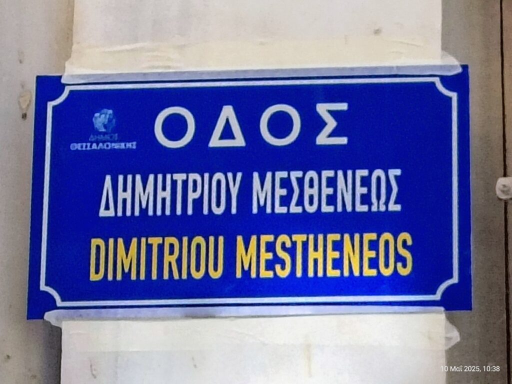 Το Σάββατο 10 Μαΐου 2025, τα Αρσάκεια Σχολεία Θεσσαλονίκης και οι Δήμοι Θεσσαλονίκης και Ιεράς Πόλεως Μεσολογγίου τίμησαν τον Δημήτριο Μεσθενέα, τον Θεσσαλονικιό αγωνιστή της Επανάστασης του 1821 και τυπογράφο της εφημερίδας του πολιορκημένου Μεσολογγίου «Ελληνικά Χρονικά» αλλά και του «Ύμνου εις την Ελευθερία» του Διονύσιου Σολωμού, δίνοντας το όνομά του σε οδό παραπλεύρως του πολυχώρου «Ύψιλον» (Εδέσσης 5 & Δημητρίου Μεσθενέως).