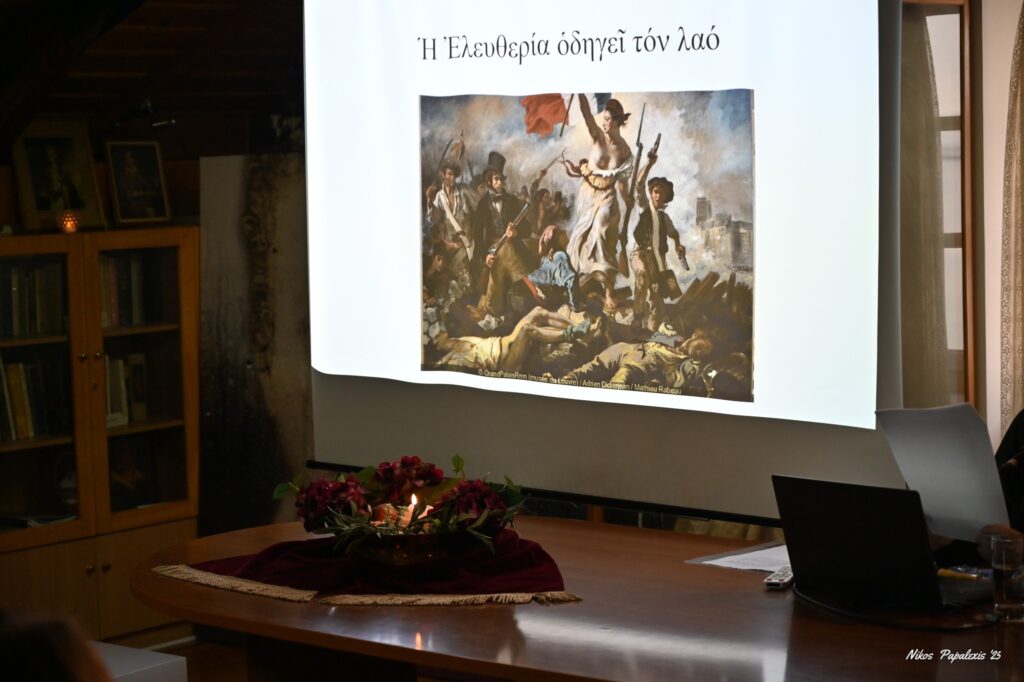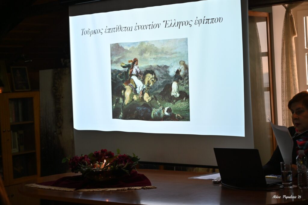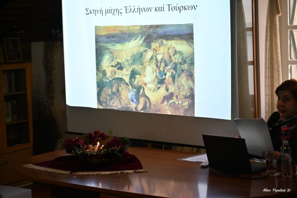 Ομιλία από την Δρ Χαρίκλεια Δημακοπούλου, Γενική Γραμματέα της Ιστορικής Εθνολογικής Εταιρείας Ελλάδος-Εθνικό Ιστορικό Μουσείο, με θέμα: «Ο Ντελακρουά ζωγραφίζει την Ελληνική Επανάσταση και τους Βυρωνικούς Ήρωες».