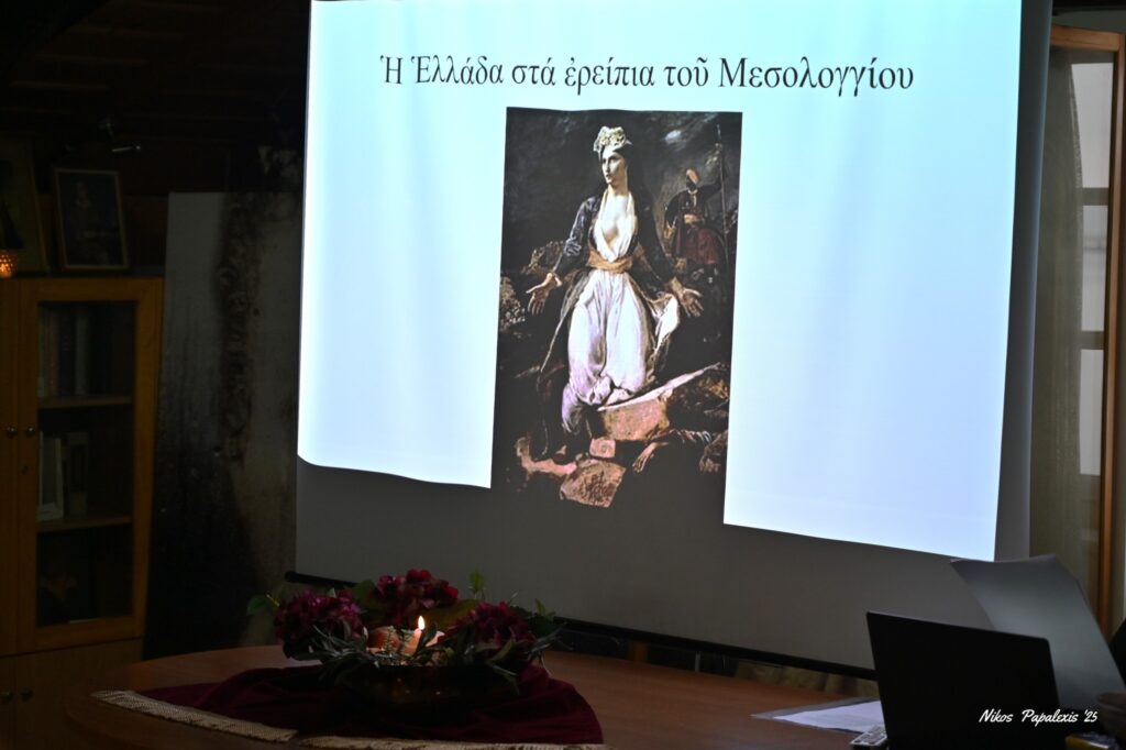 Η Βυρωνική Εταιρεία Ιεράς Πόλεως Μεσολογγίου σε συνδιοργάνωση με τον Δήμο Ιερής Πόλης Μεσολογγίου στο πλαίσιο των «Εορτών Εξόδου 2025» πραγματοποίησε με επιτυχία την Κυριακή 30 Μαρτίου, στην κατάμεστη Βιβλιοθήκη του Ερευνητικού της Κέντρου στο ΒΥΡΩΝΕΙΟ κτήριο εκδήλωση για τον εικαστικό ρομαντισμό- όπως αυτός διαμορφώθηκε κατά τη διάρκεια του Αγώνα για την Ανεξαρτησία του ελληνικού έθνους- και ειδικότερα για τα έργα του Γάλλου, Φιλέλληνα ζωγράφου, Ευγένιου Ντελακρουά.