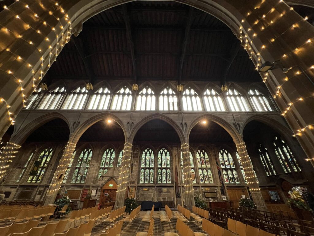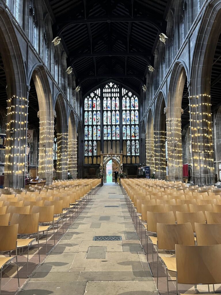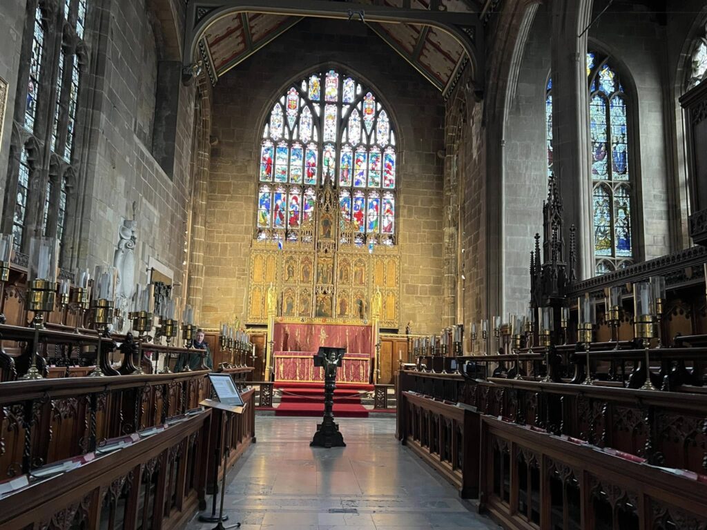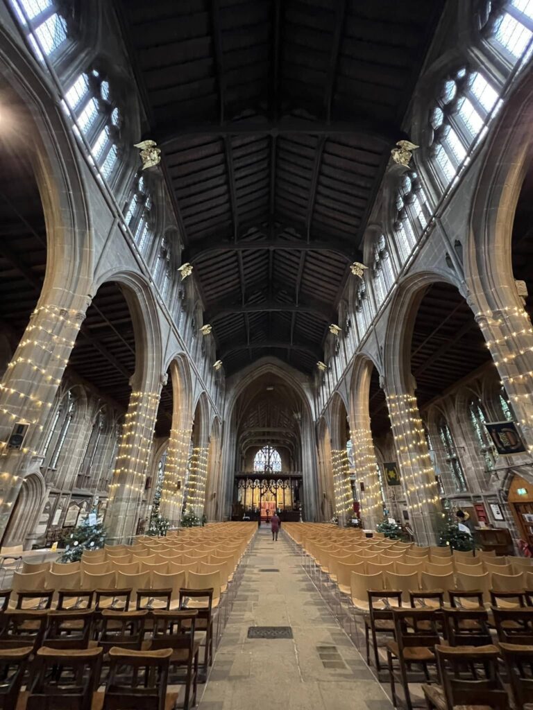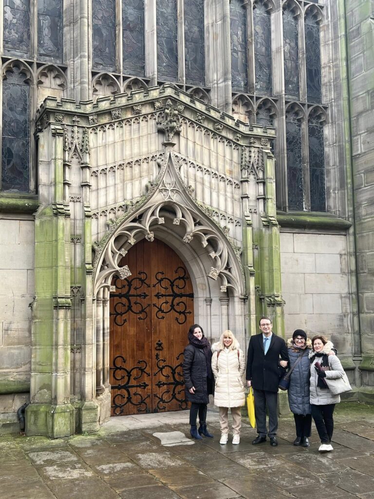 During the first day of our tour in Nottingham, a proud UNESCO City of Literature, we had the pleasure of visiting the historic St. Mary’s Church in the Lace Market, a stunning example of Gothic architecture at the heart of the city. This visit, part of our itinerary with the National Delegation from the Ministry of Culture of Greece, was made even more special by the presence of Nottingham’s Deputy Mayor, Mr. Pavlos Kotsonis. Mr. Kotsonis generously guided us through the city, sharing his insights and highlighting the rich cultural heritage that makes Nottingham so unique. The visit, to St. Mary’s Church, with its magnificent stained-glass windows and serene atmosphere, provided a moment of reflection and connection to the city’s storied past. Here are some photos capturing the beauty of this remarkable church.